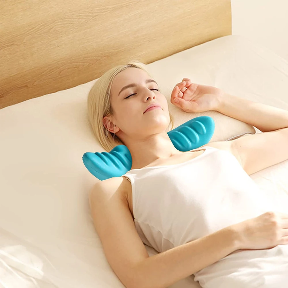 4. Simply lie down on the cervical traction pillow and let the weight of your head gently stretch the upper shoulder and anterior neck muscles. It is recommended to use for 8 minutes each time.